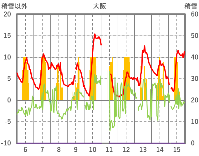 | 日 | 時 | 気温 | 降水 | 風向/風速 | 日照 | 積雪 | 降雪 |