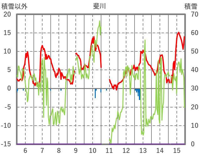 | 日 | 時 | 気温 | 降水 | 風向/風速 | 日照 | 積雪 | 降雪 |