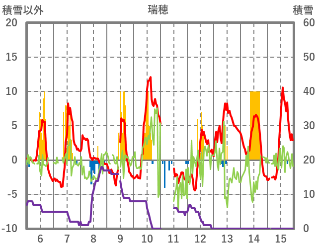 | 日 | 時 | 気温 | 降水 | 風向/風速 | 日照 | 積雪 | 降雪 |