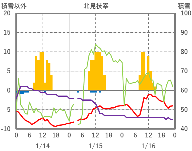 | 日 | 時 | 気温 | 降水 | 風向/風速 | 日照 | 積雪 | 降雪 |