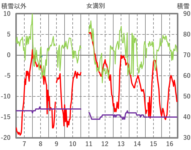 | 日 | 時 | 気温 | 降水 | 風向/風速 | 日照 | 積雪 | 降雪 |