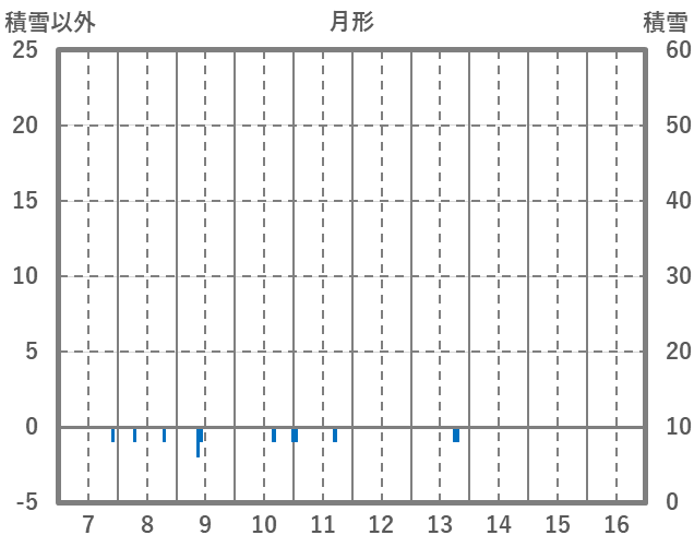 | 日 | 時 | 気温 | 降水 | 風向/風速 | 日照 | 積雪 | 降雪 |