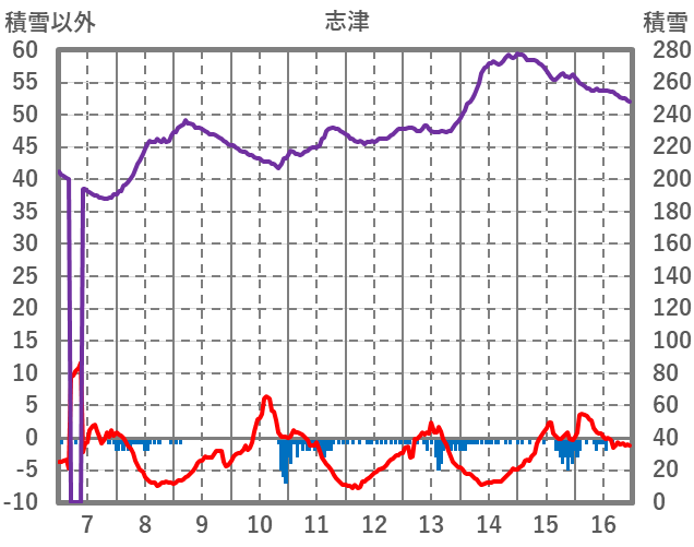| 日 | 時 | 気温 | 降水 | 風向/風速 | 日照 | 積雪 | 降雪 |
