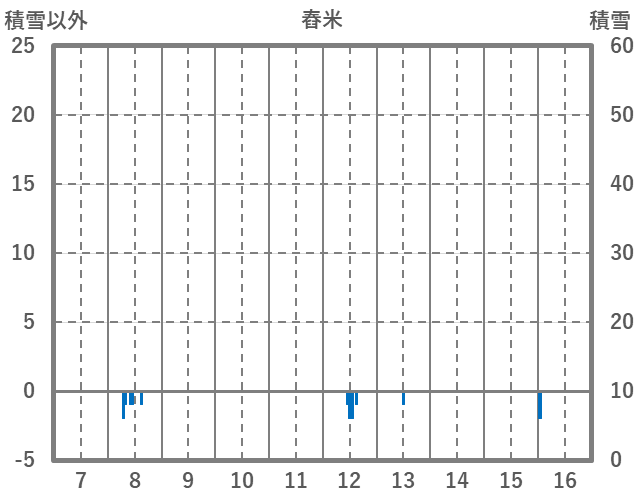 | 日 | 時 | 気温 | 降水 | 風向/風速 | 日照 | 積雪 | 降雪 |