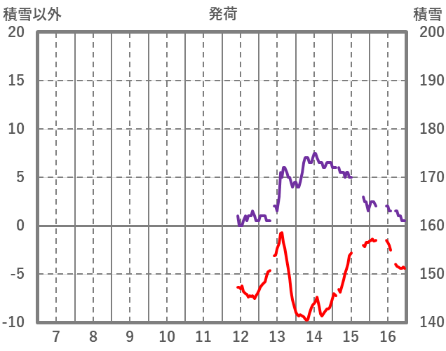 | 日 | 時 | 気温 | 降水 | 風向/風速 | 日照 | 積雪 | 降雪 |