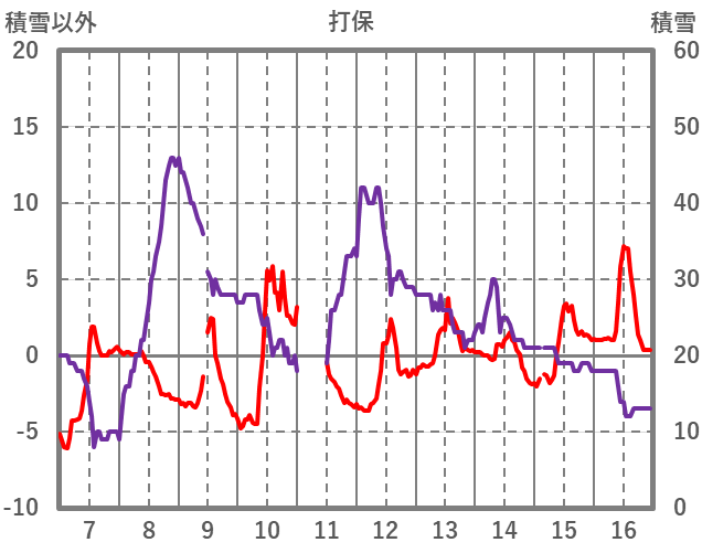 | 日 | 時 | 気温 | 降水 | 風向/風速 | 日照 | 積雪 | 降雪 |