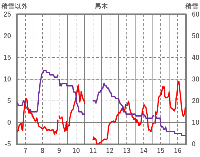 | 日 | 時 | 気温 | 降水 | 風向/風速 | 日照 | 積雪 | 降雪 |