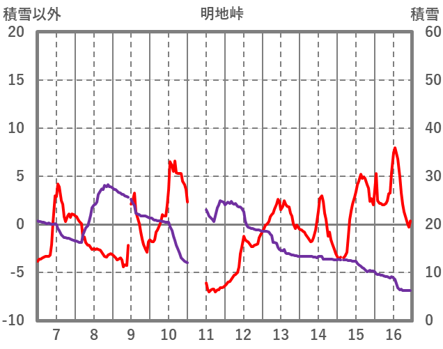 | 日 | 時 | 気温 | 降水 | 風向/風速 | 日照 | 積雪 | 降雪 |