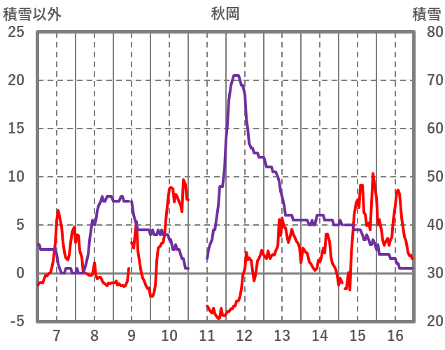| 日 | 時 | 気温 | 降水 | 風向/風速 | 日照 | 積雪 | 降雪 |