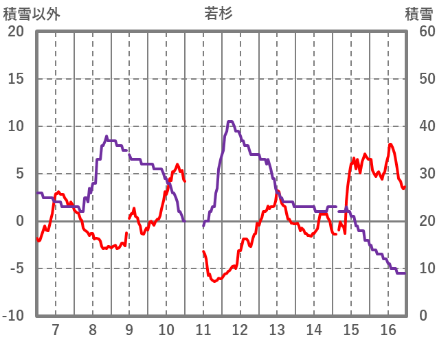 | 日 | 時 | 気温 | 降水 | 風向/風速 | 日照 | 積雪 | 降雪 |