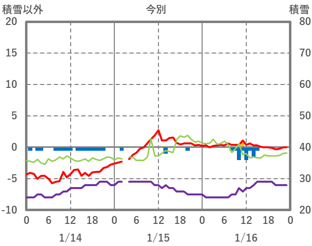 | 日 | 時 | 気温 | 降水 | 風向/風速 | 日照 | 積雪 | 降雪 |