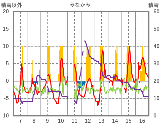 | 日 | 時 | 気温 | 降水 | 風向/風速 | 日照 | 積雪 | 降雪 |