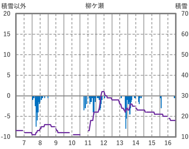| 日 | 時 | 気温 | 降水 | 風向/風速 | 日照 | 積雪 | 降雪 |