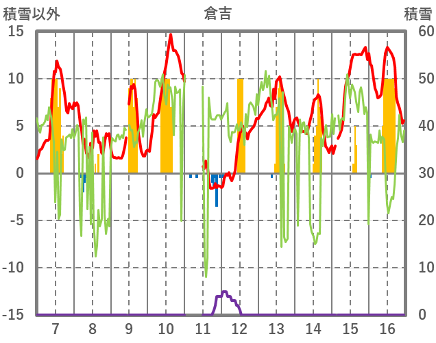 | 日 | 時 | 気温 | 降水 | 風向/風速 | 日照 | 積雪 | 降雪 |