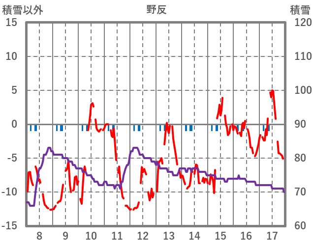 | 日 | 時 | 気温 | 降水 | 風向/風速 | 日照 | 積雪 | 降雪 |