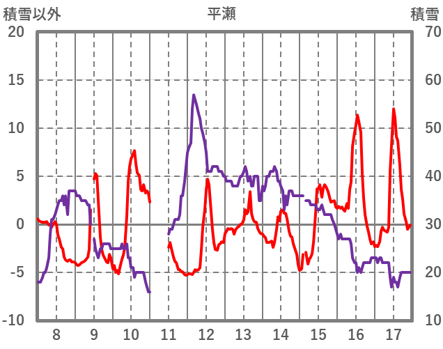 | 日 | 時 | 気温 | 降水 | 風向/風速 | 日照 | 積雪 | 降雪 |