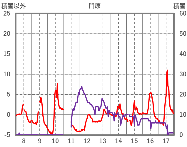 | 日 | 時 | 気温 | 降水 | 風向/風速 | 日照 | 積雪 | 降雪 |