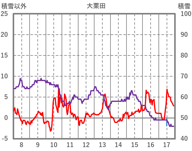 | 日 | 時 | 気温 | 降水 | 風向/風速 | 日照 | 積雪 | 降雪 |