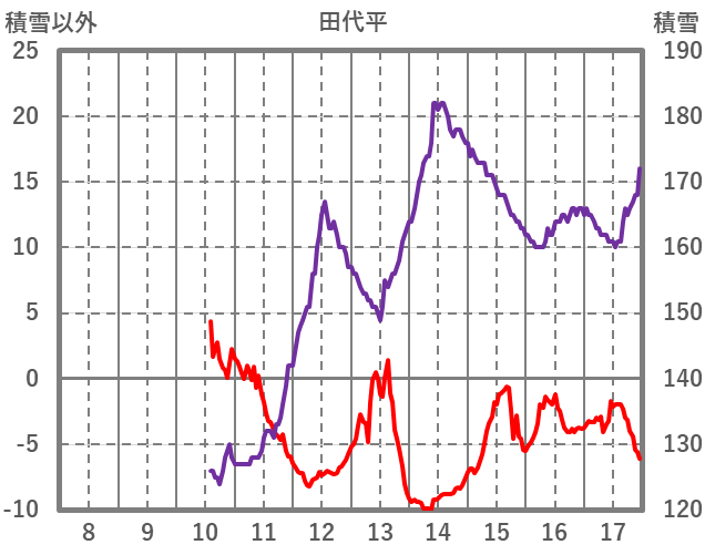 | 日 | 時 | 気温 | 降水 | 風向/風速 | 日照 | 積雪 | 降雪 |