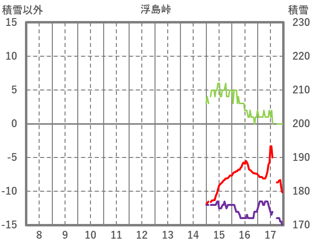 | 日 | 時 | 気温 | 降水 | 風向/風速 | 日照 | 積雪 | 降雪 |