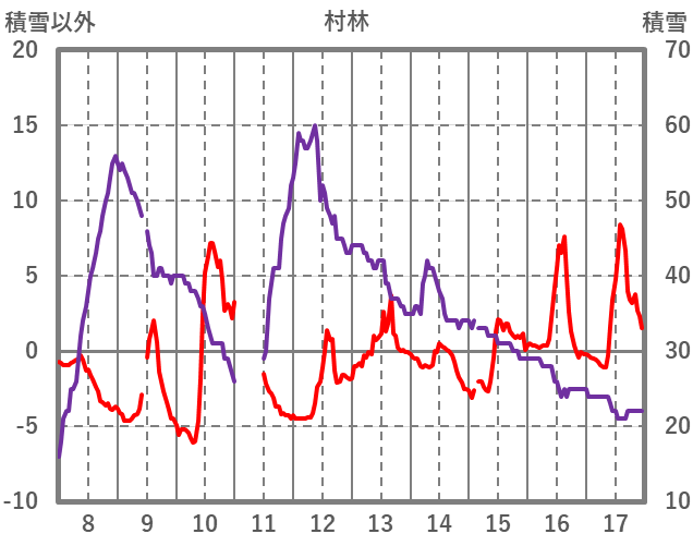 | 日 | 時 | 気温 | 降水 | 風向/風速 | 日照 | 積雪 | 降雪 |