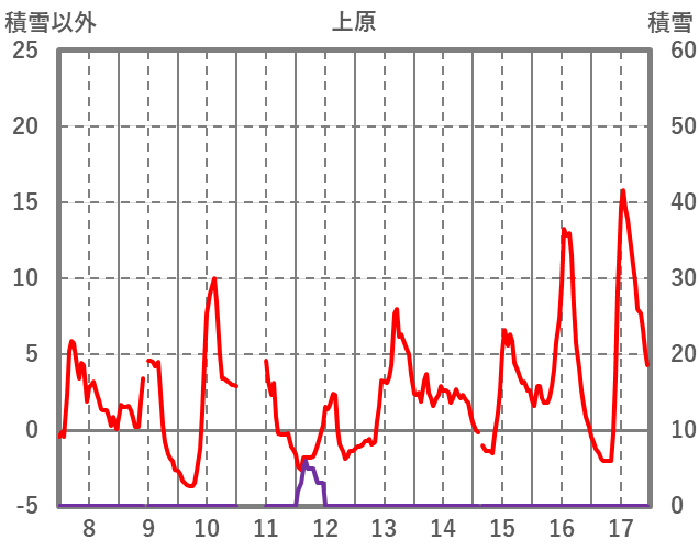 | 日 | 時 | 気温 | 降水 | 風向/風速 | 日照 | 積雪 | 降雪 |