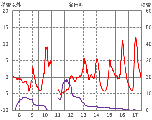 | 日 | 時 | 気温 | 降水 | 風向/風速 | 日照 | 積雪 | 降雪 |