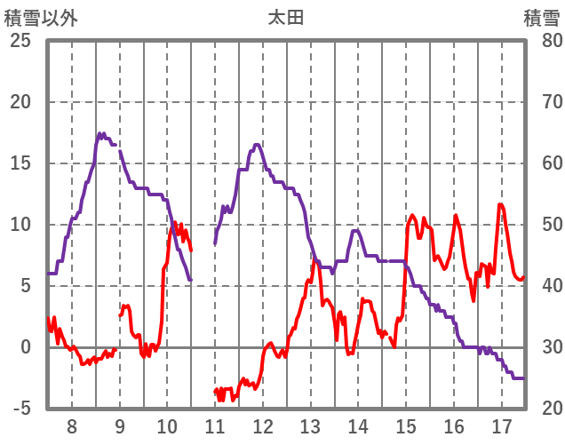 | 日 | 時 | 気温 | 降水 | 風向/風速 | 日照 | 積雪 | 降雪 |