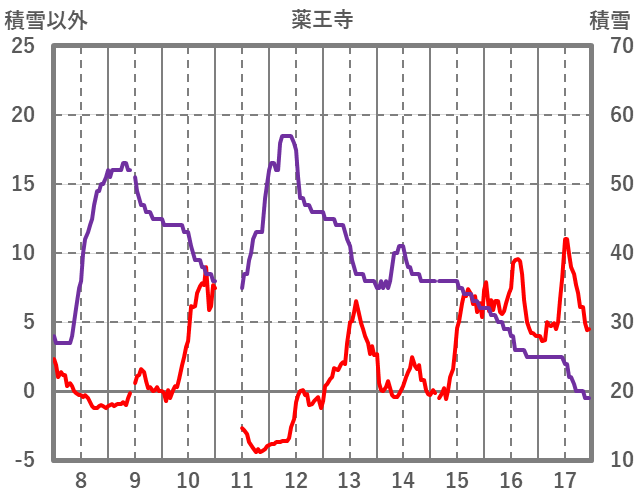 | 日 | 時 | 気温 | 降水 | 風向/風速 | 日照 | 積雪 | 降雪 |