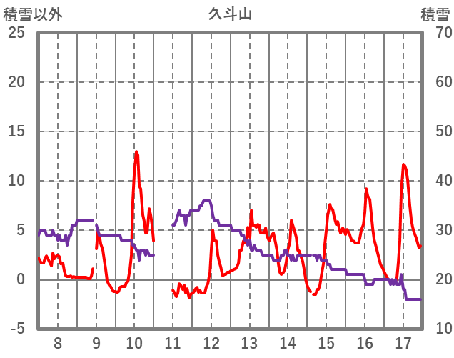 | 日 | 時 | 気温 | 降水 | 風向/風速 | 日照 | 積雪 | 降雪 |