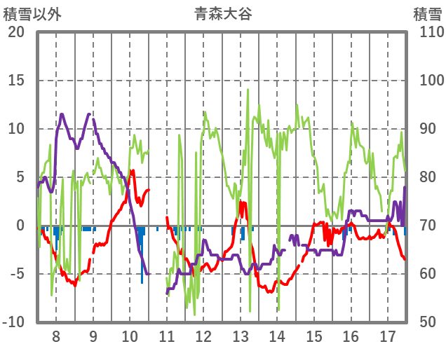 | 日 | 時 | 気温 | 降水 | 風向/風速 | 日照 | 積雪 | 降雪 |