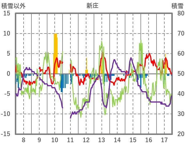 | 日 | 時 | 気温 | 降水 | 風向/風速 | 日照 | 積雪 | 降雪 |