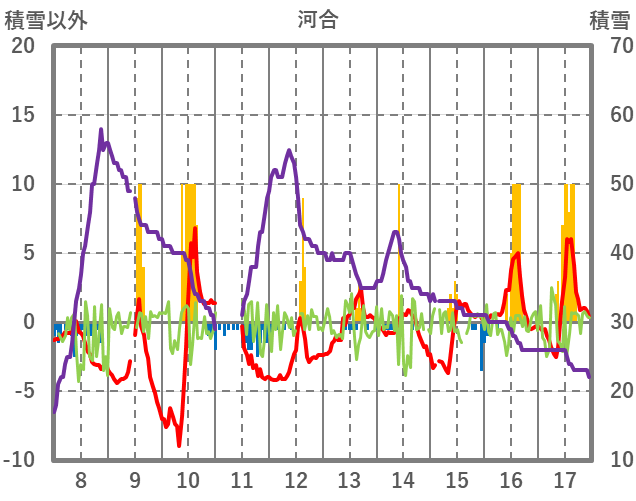 | 日 | 時 | 気温 | 降水 | 風向/風速 | 日照 | 積雪 | 降雪 |