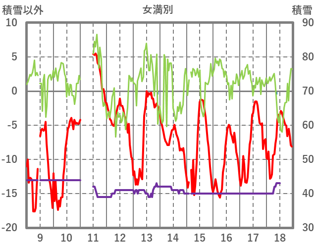 | 日 | 時 | 気温 | 降水 | 風向/風速 | 日照 | 積雪 | 降雪 |