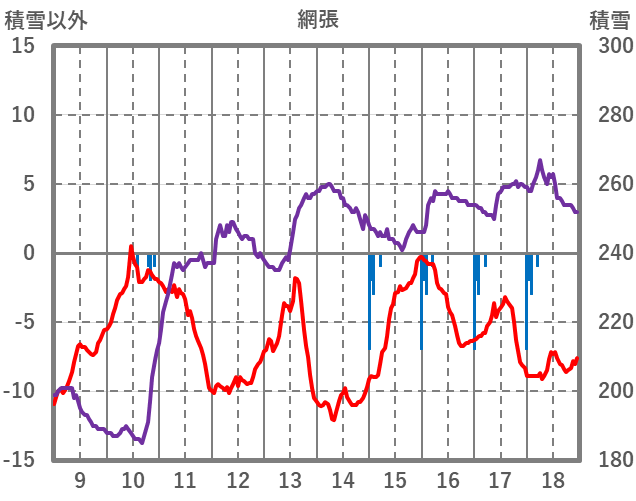 | 日 | 時 | 気温 | 降水 | 風向/風速 | 日照 | 積雪 | 降雪 |