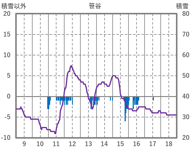 | 日 | 時 | 気温 | 降水 | 風向/風速 | 日照 | 積雪 | 降雪 |