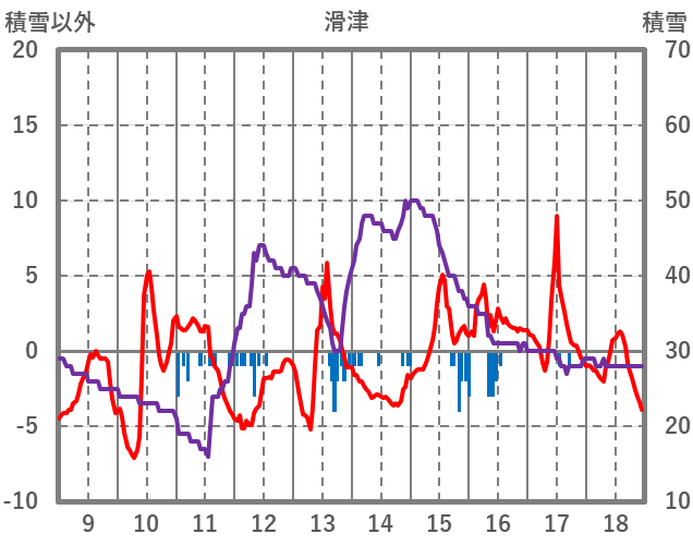 | 日 | 時 | 気温 | 降水 | 風向/風速 | 日照 | 積雪 | 降雪 |