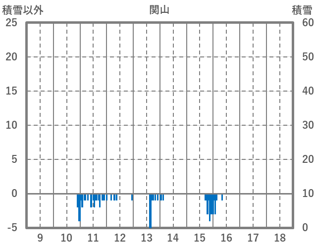 | 日 | 時 | 気温 | 降水 | 風向/風速 | 日照 | 積雪 | 降雪 |