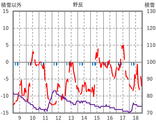 | 日 | 時 | 気温 | 降水 | 風向/風速 | 日照 | 積雪 | 降雪 |