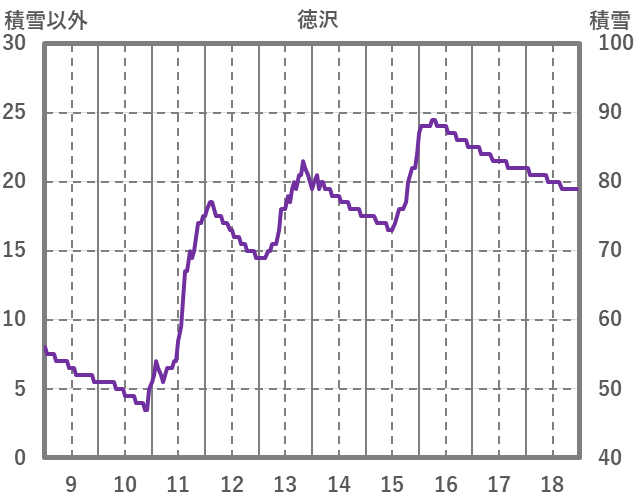 | 日 | 時 | 気温 | 降水 | 風向/風速 | 日照 | 積雪 | 降雪 |