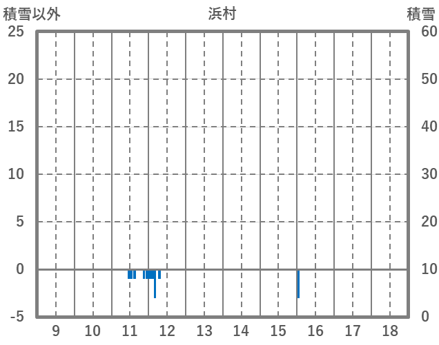 | 日 | 時 | 気温 | 降水 | 風向/風速 | 日照 | 積雪 | 降雪 |
