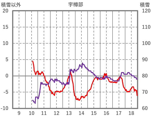 | 日 | 時 | 気温 | 降水 | 風向/風速 | 日照 | 積雪 | 降雪 |