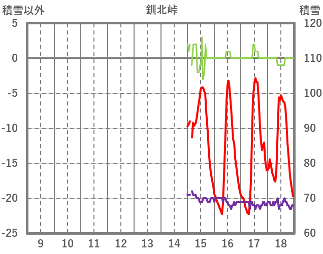 | 日 | 時 | 気温 | 降水 | 風向/風速 | 日照 | 積雪 | 降雪 |