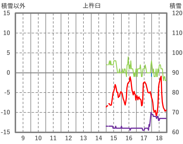 | 日 | 時 | 気温 | 降水 | 風向/風速 | 日照 | 積雪 | 降雪 |