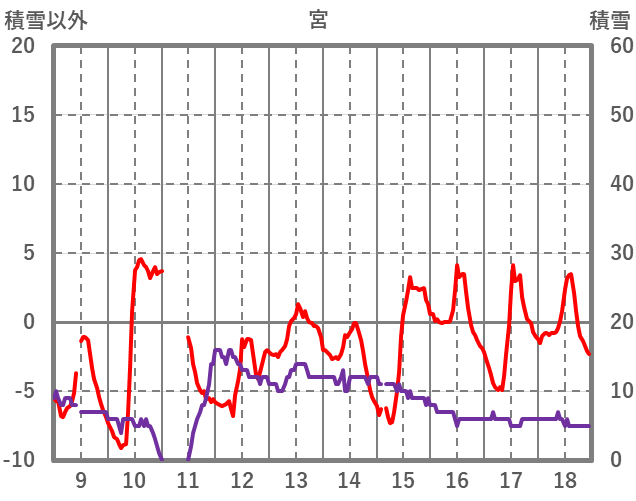 | 日 | 時 | 気温 | 降水 | 風向/風速 | 日照 | 積雪 | 降雪 |