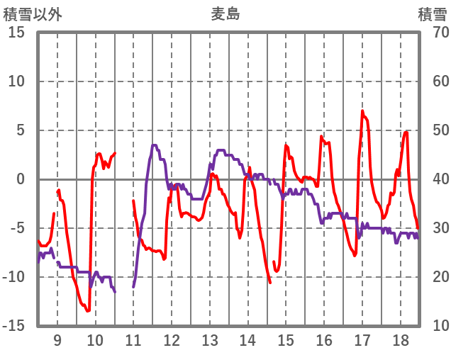 | 日 | 時 | 気温 | 降水 | 風向/風速 | 日照 | 積雪 | 降雪 |