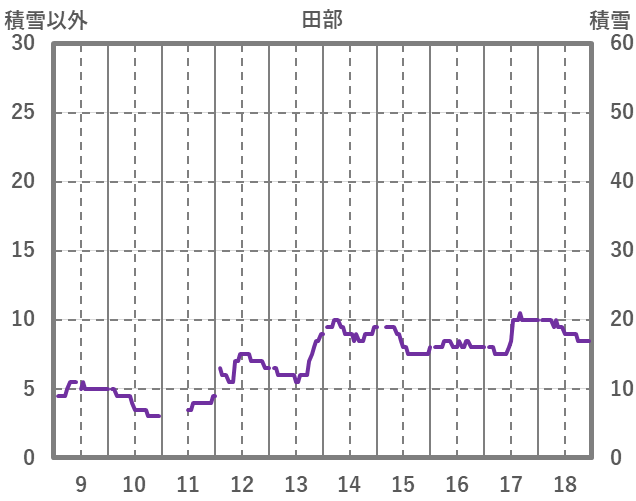 | 日 | 時 | 気温 | 降水 | 風向/風速 | 日照 | 積雪 | 降雪 |