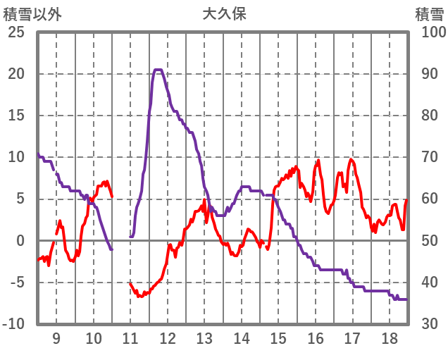 | 日 | 時 | 気温 | 降水 | 風向/風速 | 日照 | 積雪 | 降雪 |