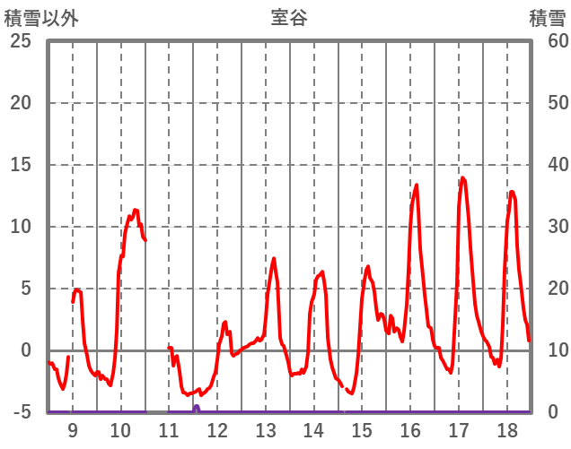| 日 | 時 | 気温 | 降水 | 風向/風速 | 日照 | 積雪 | 降雪 |