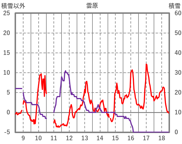 | 日 | 時 | 気温 | 降水 | 風向/風速 | 日照 | 積雪 | 降雪 |